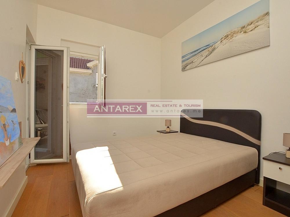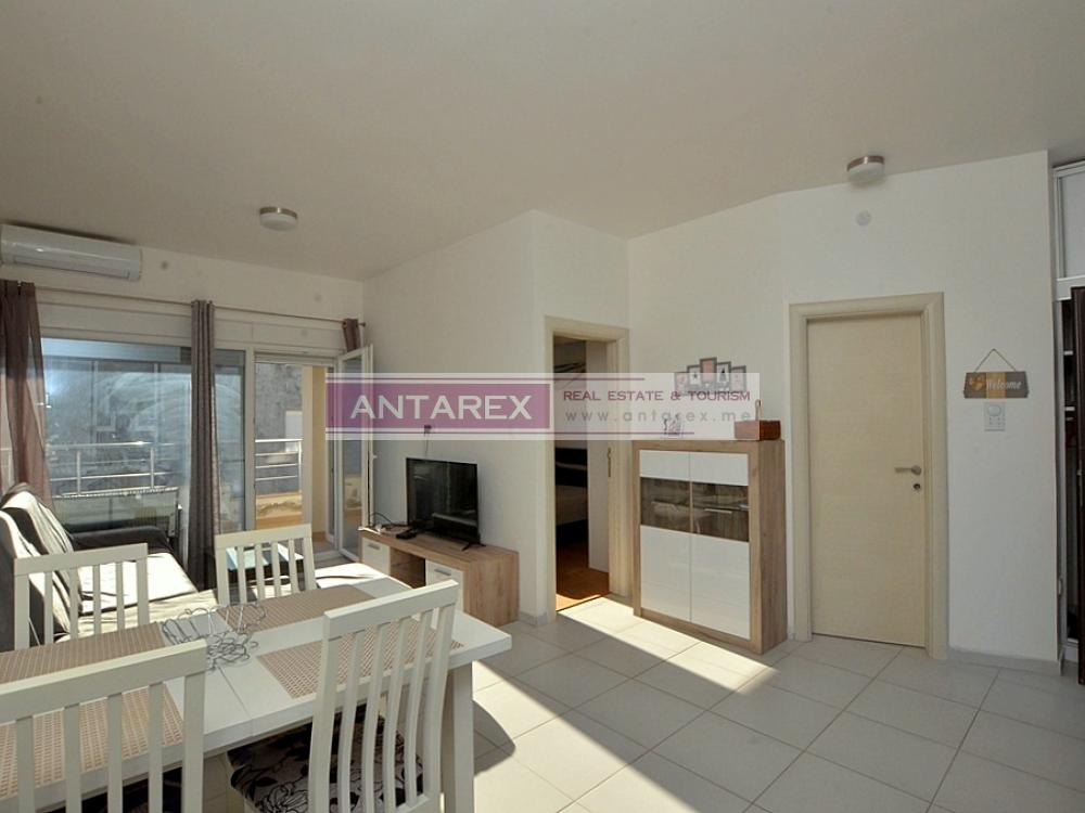 This 45-square-meter apartment is for sale in the large village of Bijela. Located on the first floor of a small apartment building, it consists of a living room with a kitchenette, a bedroom, a bathroom, and a terrace. It is fully furnished and equipped with appliances.