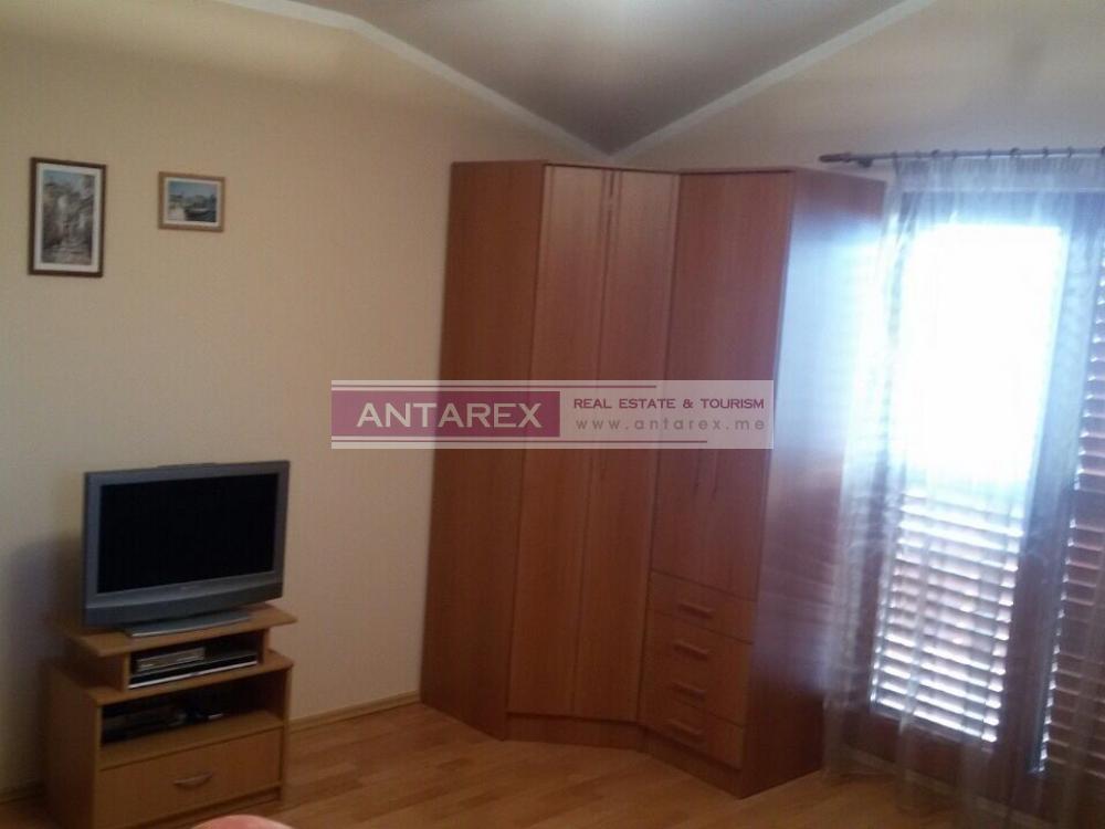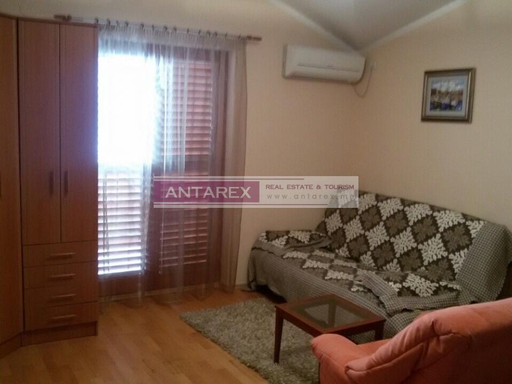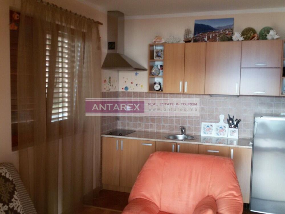 Apartment near the embankment in the resort village of Baosici is for sale. The apartment is 63 sq.m. and is located on the first floor of a small apartment building. The territory is fenced; there is a parking lot, a swimming pool and a recreation area. Layout: corridor, living room with a kitchen area and an exit to a large terrace, a bedroom with an exit to a closed terrace-study, a bathroom. The apartment is furnished and equipped with household appliances.