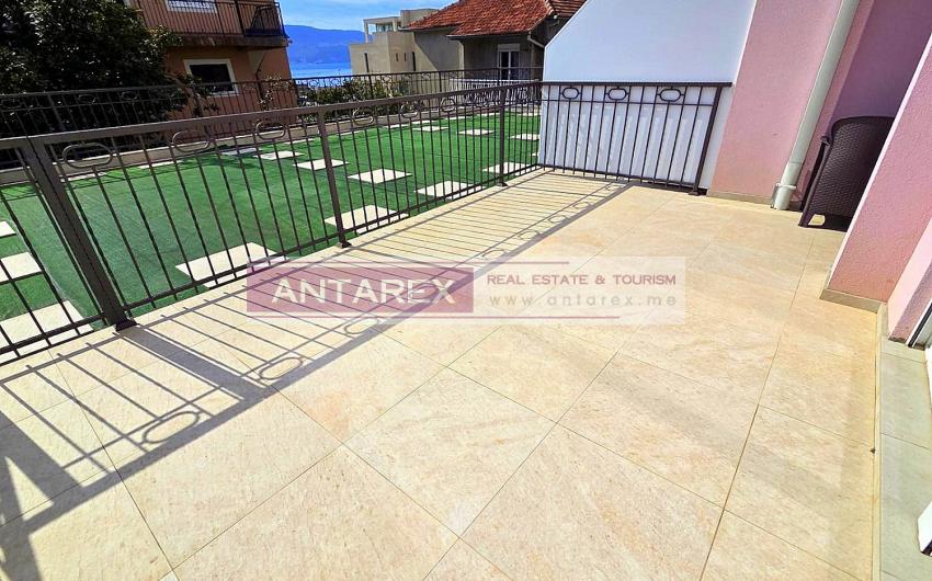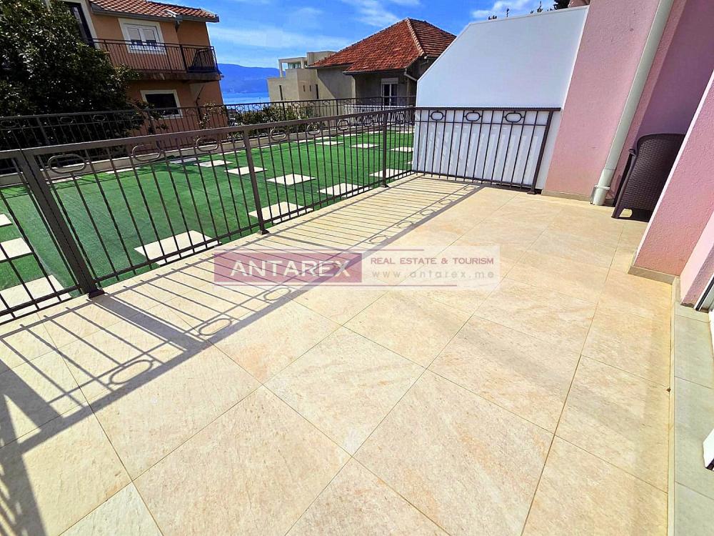 Dieses helle und gemütliche Apartment mit einem Schlafzimmer im Ferienort Kumbor steht zum Verkauf. Es befindet sich im Hochparterre. Die 39 Quadratmeter große Wohnung verfügt über ein Wohnzimmer, eine Küche, ein Schlafzimmer, ein Badezimmer, eine verglaste Terrasse und eine große, 20 Quadratmeter große Dachterrasse. Das Apartment ist möbliert und mit Haushaltsgeräten ausgestattet. Fußbodenheizung ist in allen Räumen außer dem Schlafzimmer vorhanden. TV und Internetanschluss stehen zur Verfügung.