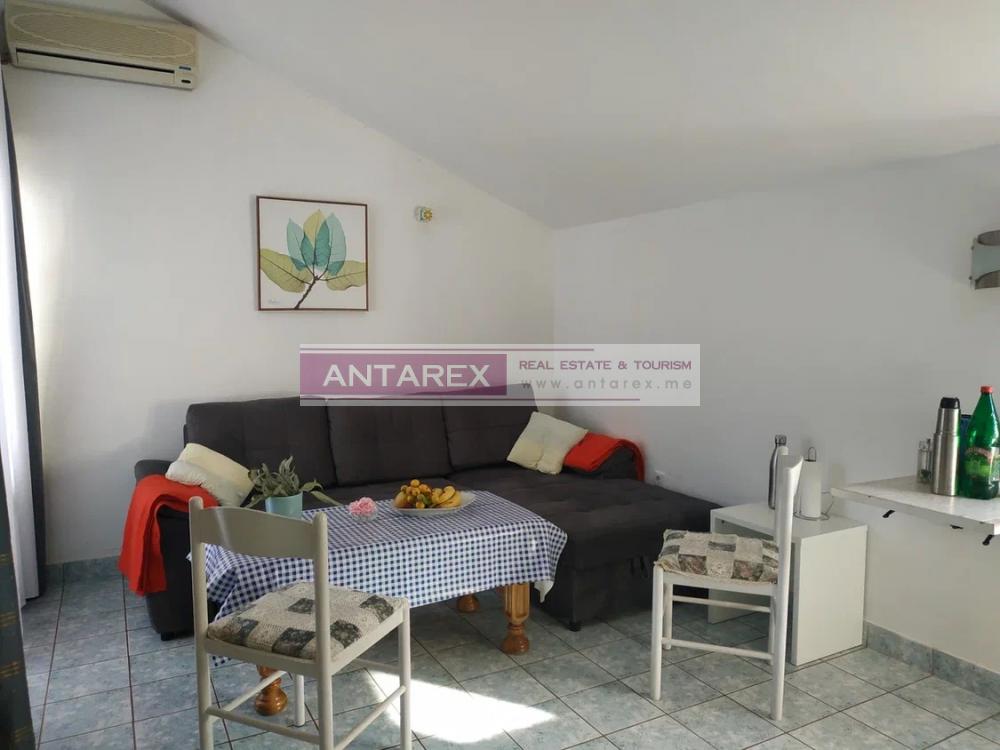 Zum Verkauf steht eine Wohnung mit einer Fläche von 36 qm, die sich im letzten vierten Stock eines kleinen Mehrfamilienhauses befindet. Layout - Flur, Wohnzimmer mit Zugang zu einer großen Terrasse, Küche, Bad. Über dem Schlafzimmer befindet sich ein geräumiges Zwischengeschoss, das als Lager genutzt wird. Parkplatz vor dem Haus, Supermarkt, Bäcker und Bushaltestelle fußläufig erreichbar.