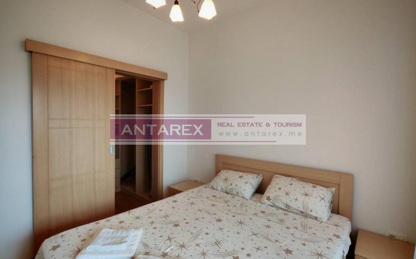 Becici is one of the most attractive coastal areas in Montenegro, known for its long sandy beaches, beautiful promenade, and well-developed infrastructure with numerous cafés, restaurants, and shops. The area offers a peaceful seaside lifestyle combined with close proximity to Budva, located just 2 km away, where you can enjoy entertainment, cultural events, and nightlife. Tivat International Airport is conveniently located only 22 km from the apartment.