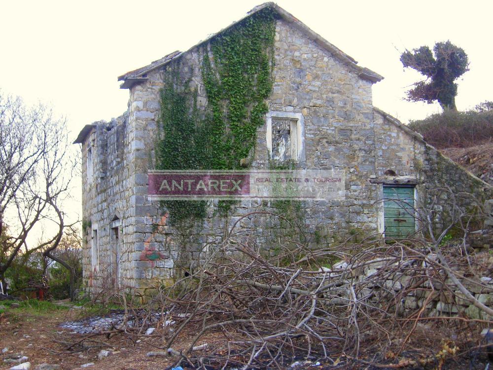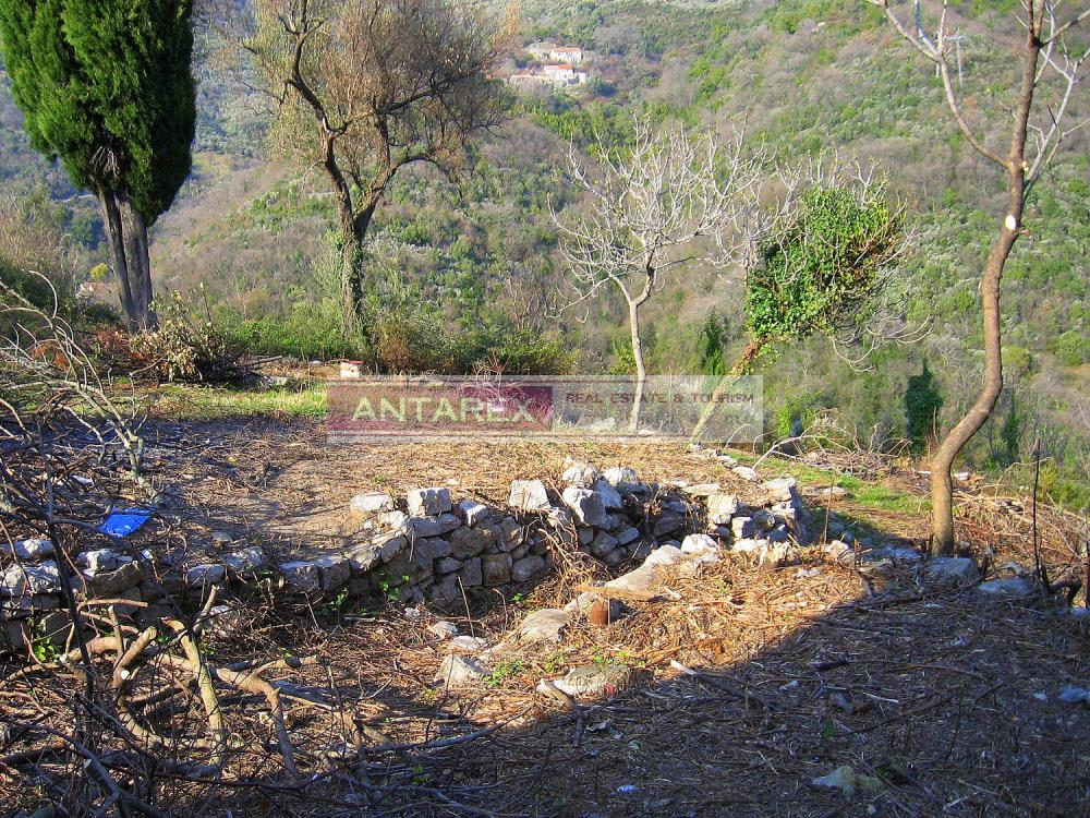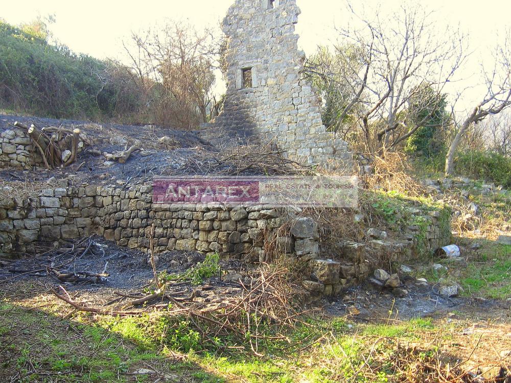 There are 4 ancient dilapidated stone buildings for reconstruction on the plot. Mimosa and 200-300 year old olives grow on the plot. There is a slight slope.