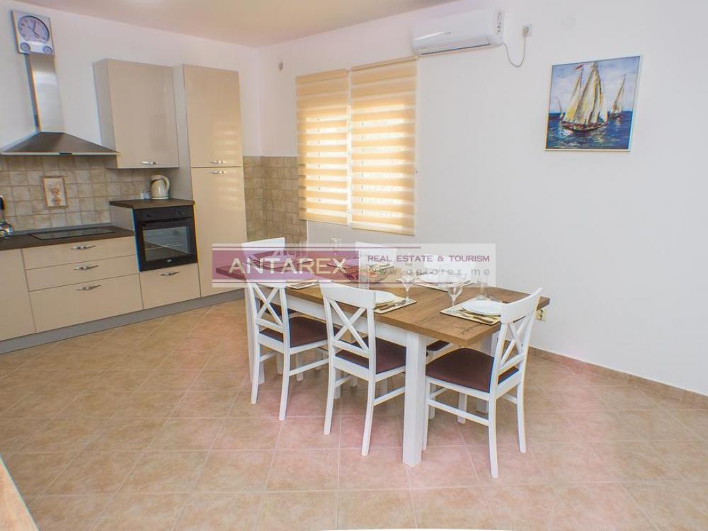 Продается уютный дом, всего в 200-х метрах от пляжа. Площадь дома 123 м2, площадь участка 263м2, во дворе парковка и небольшой сад. На первом этаже кухня-столовая, гостиная, терраса, санузел. На втором этаже 2 спальни, каждая с балконом, и санузел. Дом полностью меблирован и укомплектован бытовой техникой. К несомненным достоинствам можно отнести прекрасный потенциал для сдачи в аренду, умиротворенную атмосферу вокруг и роскошный вид на Боко-Которскую бухту. Аэропорт Тиват всего в 20 минутах езды, аэропорт Дубровник 90минут на машине.