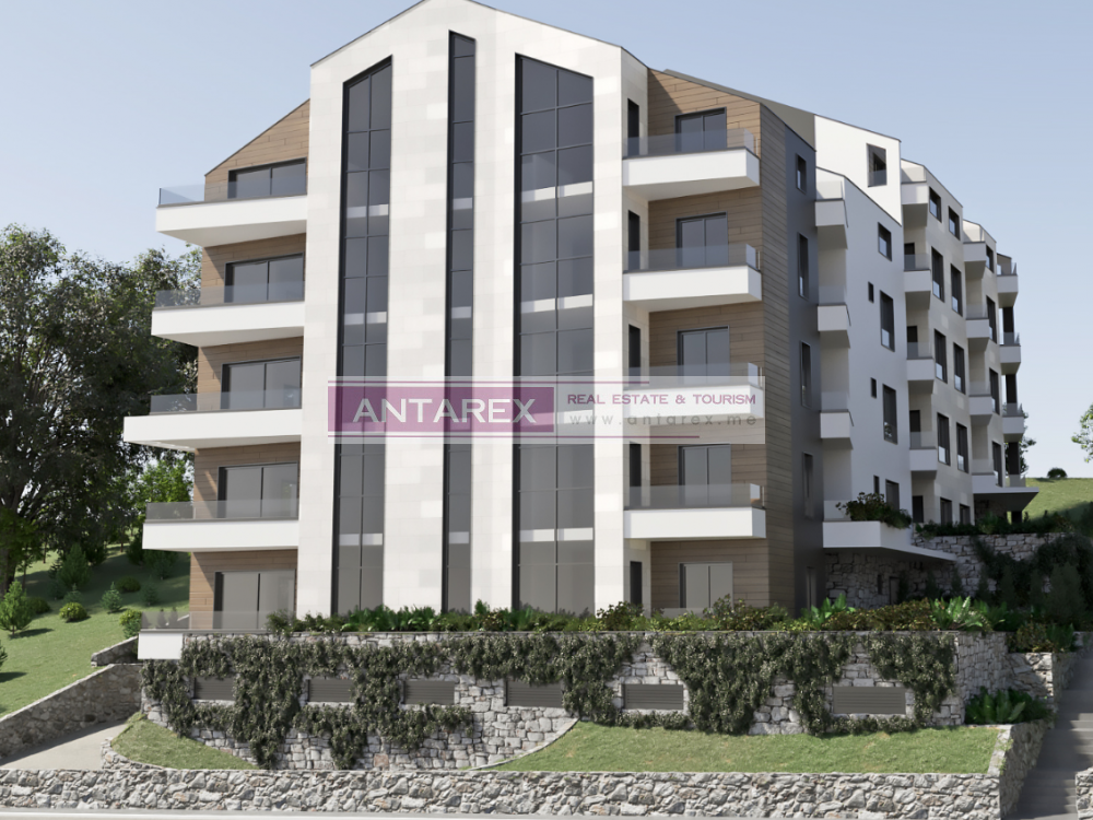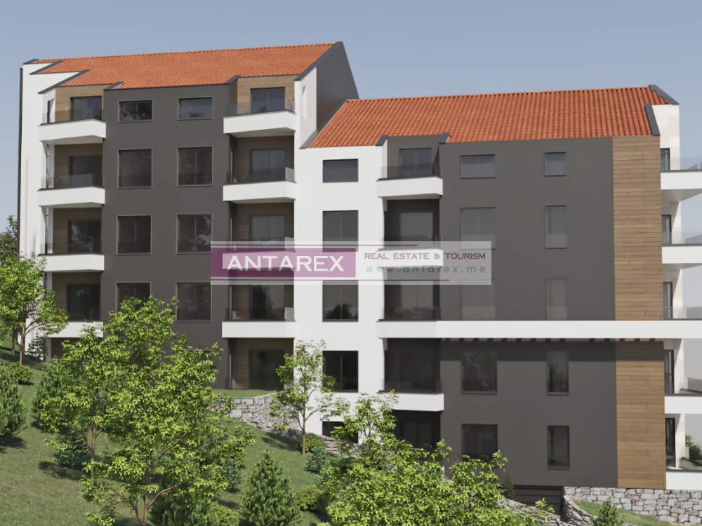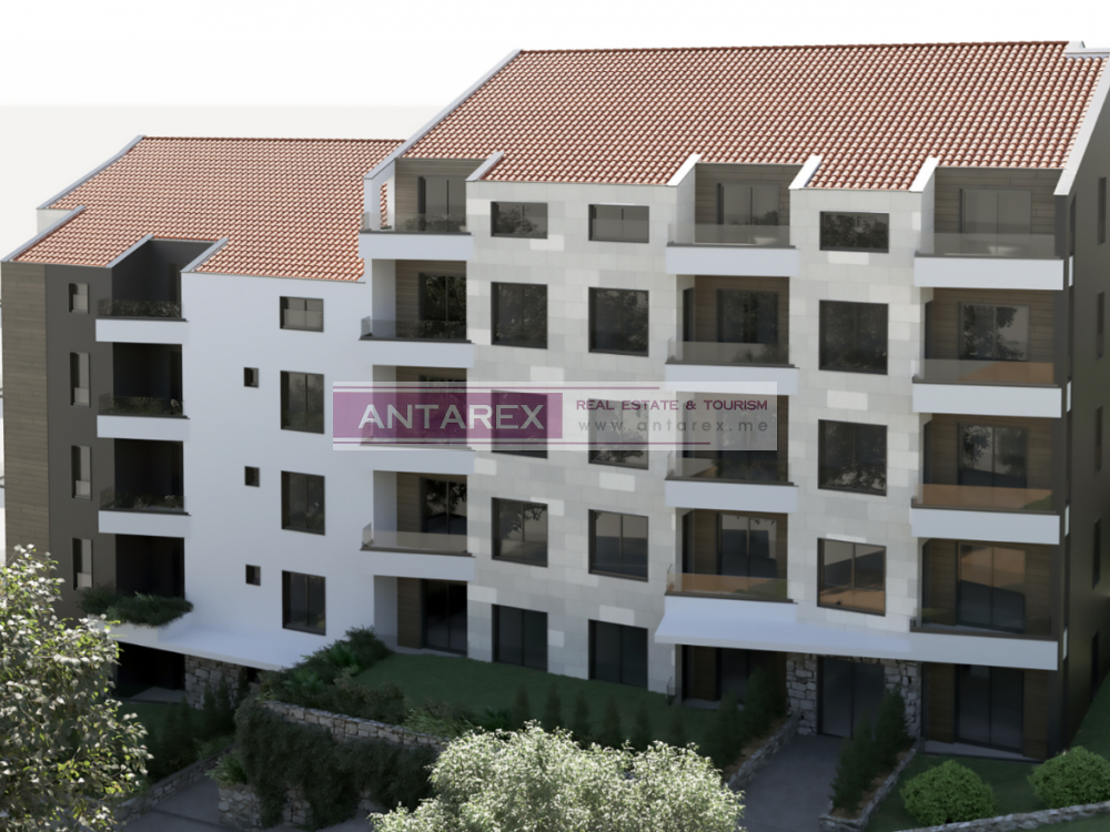 We offer for sale apartments in new high-class residential complex in Budva in the district of Babin Do. The distance to the sea and promenade is 550 meters or 6-minute walk. All permits have been received for the construction. The complex includes two 5-storey buildings with 45 apartments. Each building will be equippped with two elevators and will have underground parking. For sale are one- and two-bedroom apartments with convinient layouts, most of them with sea view. Panoramic windows, underfloor heating, modernapartmentdesign. Video surveillance and accesscontrolsystem incommonareas.