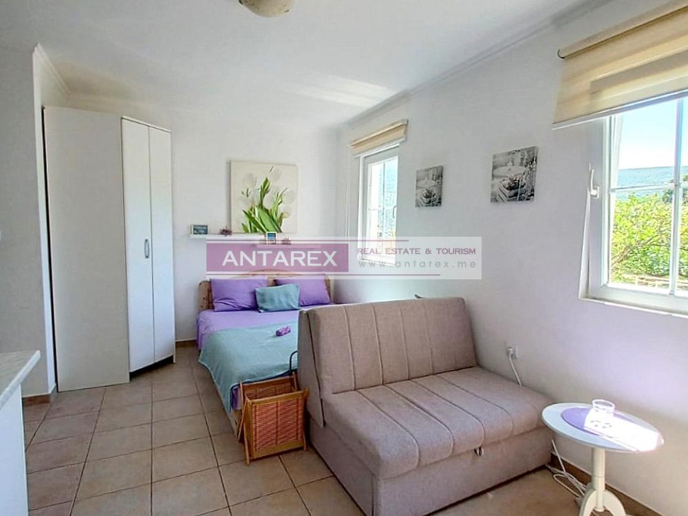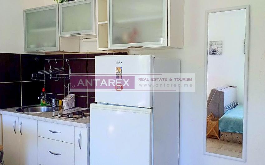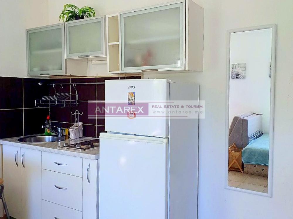 A studio apartment in the resort village of Djenovici is available for long-term rent. The area of the studio is 23 sq.m. + 3 sq.m. of the balcony, dry and bright - 3 windows overlook 2 sides. Equipped with a modern kitchen and necessary furniture.