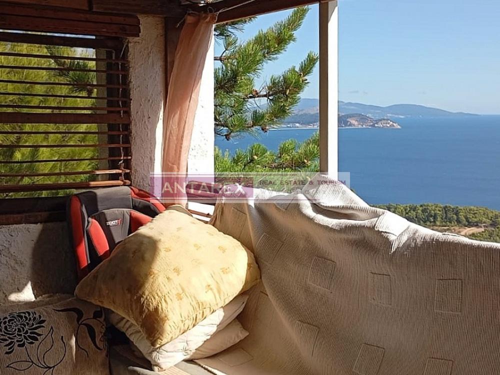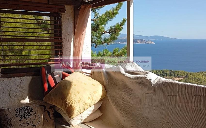 The house is 100 sq.m. on a 400 sq.m. plot. It has two floors with separate entrances, each with a panoramic sea view.