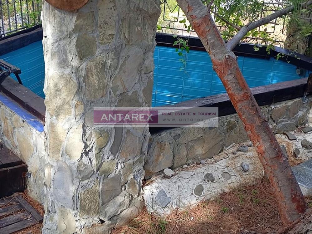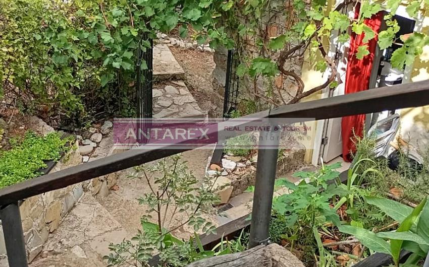 Each floor has an apartment with an identical layout: two bedrooms, a kitchen, a living room, a bathroom, and a roof terrace. Both floors are air-conditioned, and the living rooms has fireplaces. The house is fully furnished and includes all necessary appliances. The surrounding land is well-maintained, with an outdoor seating area overlooking the sea and a swimming pool. Terraced gardens are available, and the steps and walls are made of stone in a traditional style. Private parking for three cars.